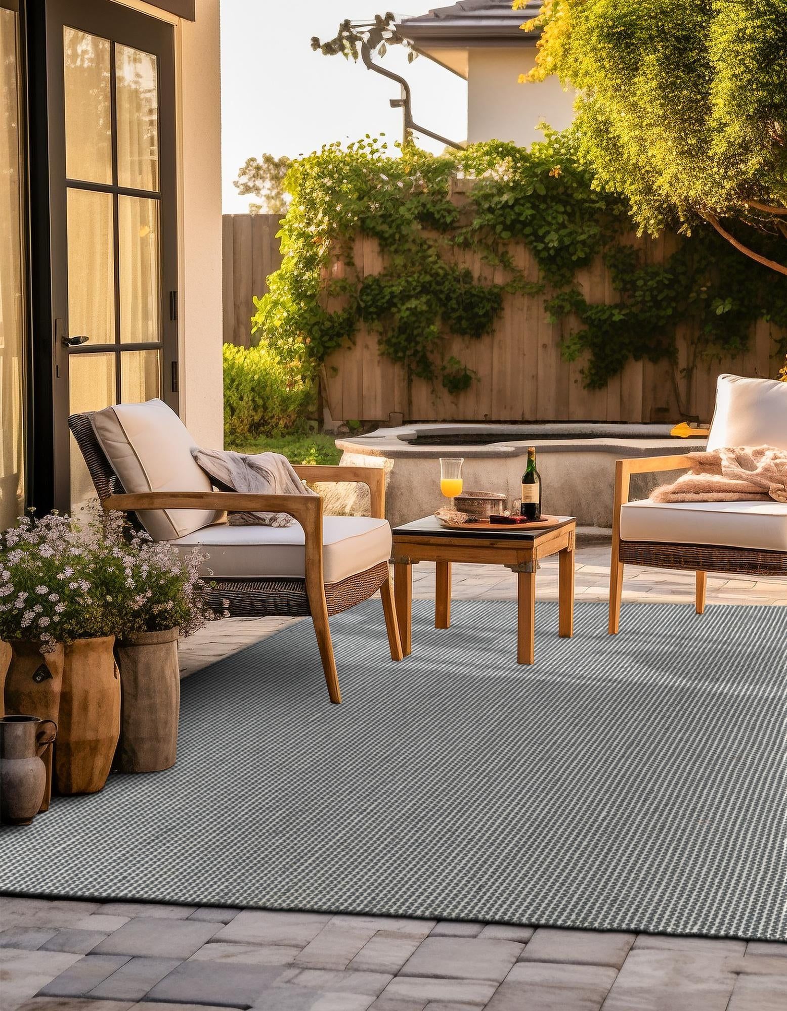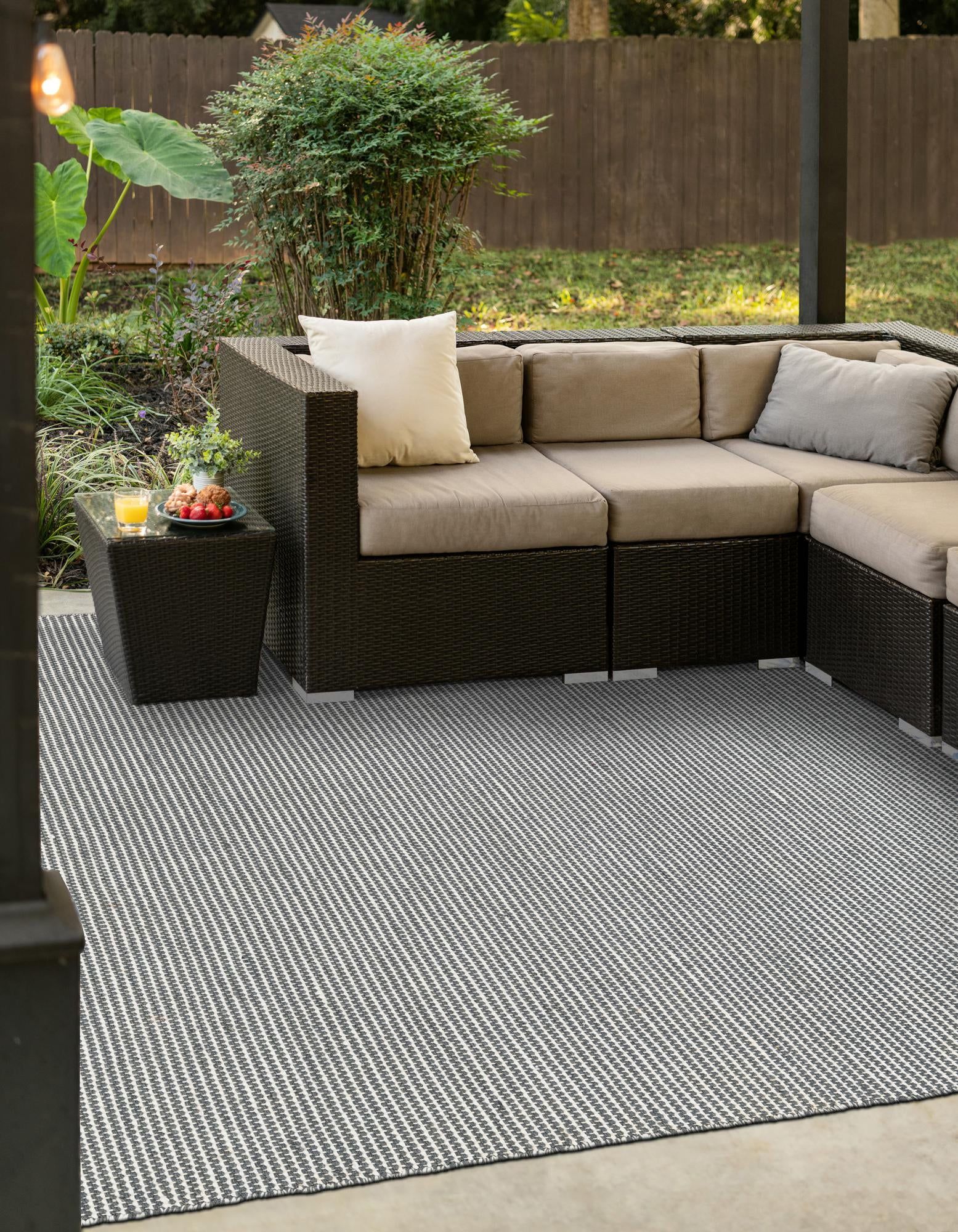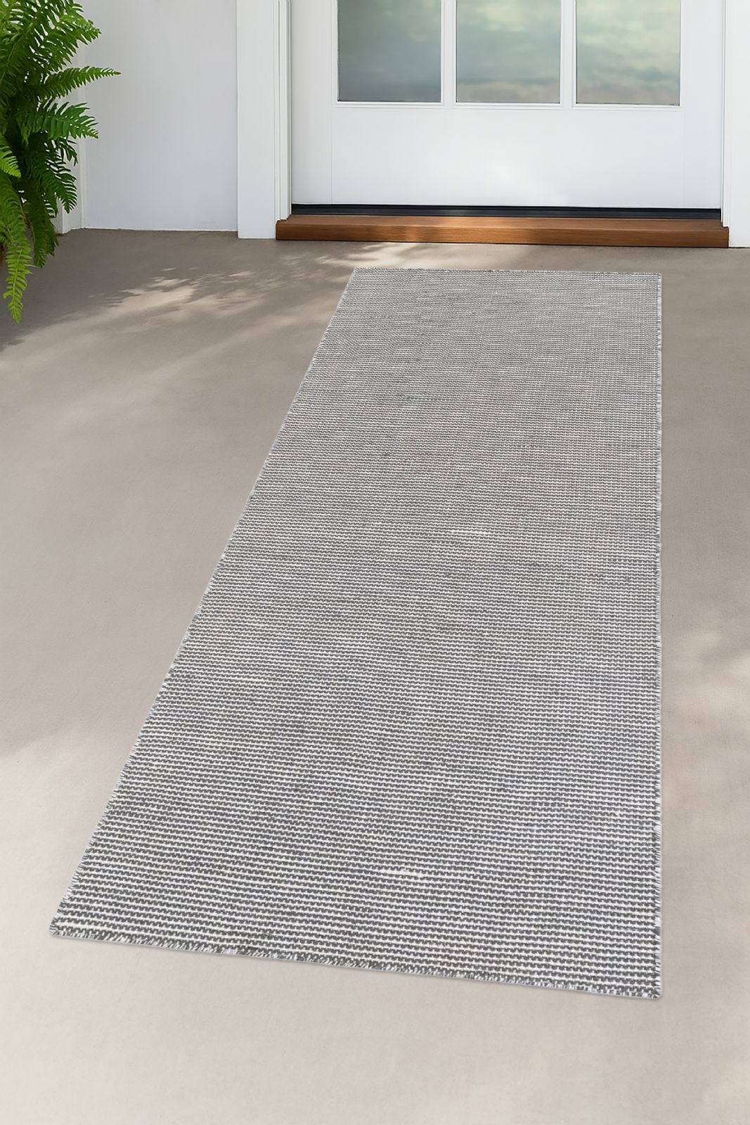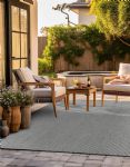 This versatile indoor/outdoor rug is hand made in India using 100% PET derived from recycled plastic bottles, offering both sustainability and durability. Its medium pile provides a comfortable feel underfoot, while the handcrafted weave ensures a unique, artisanal finish ideal for a variety of spaces.