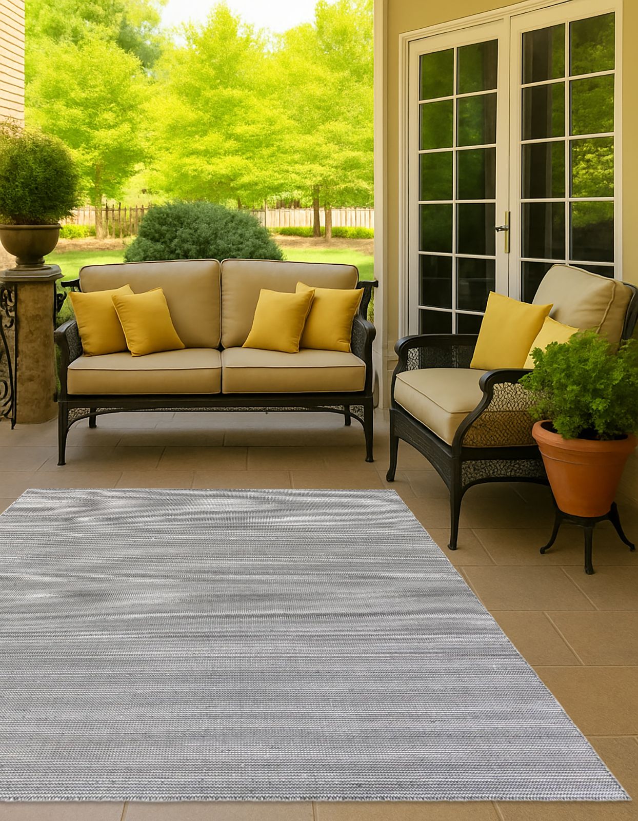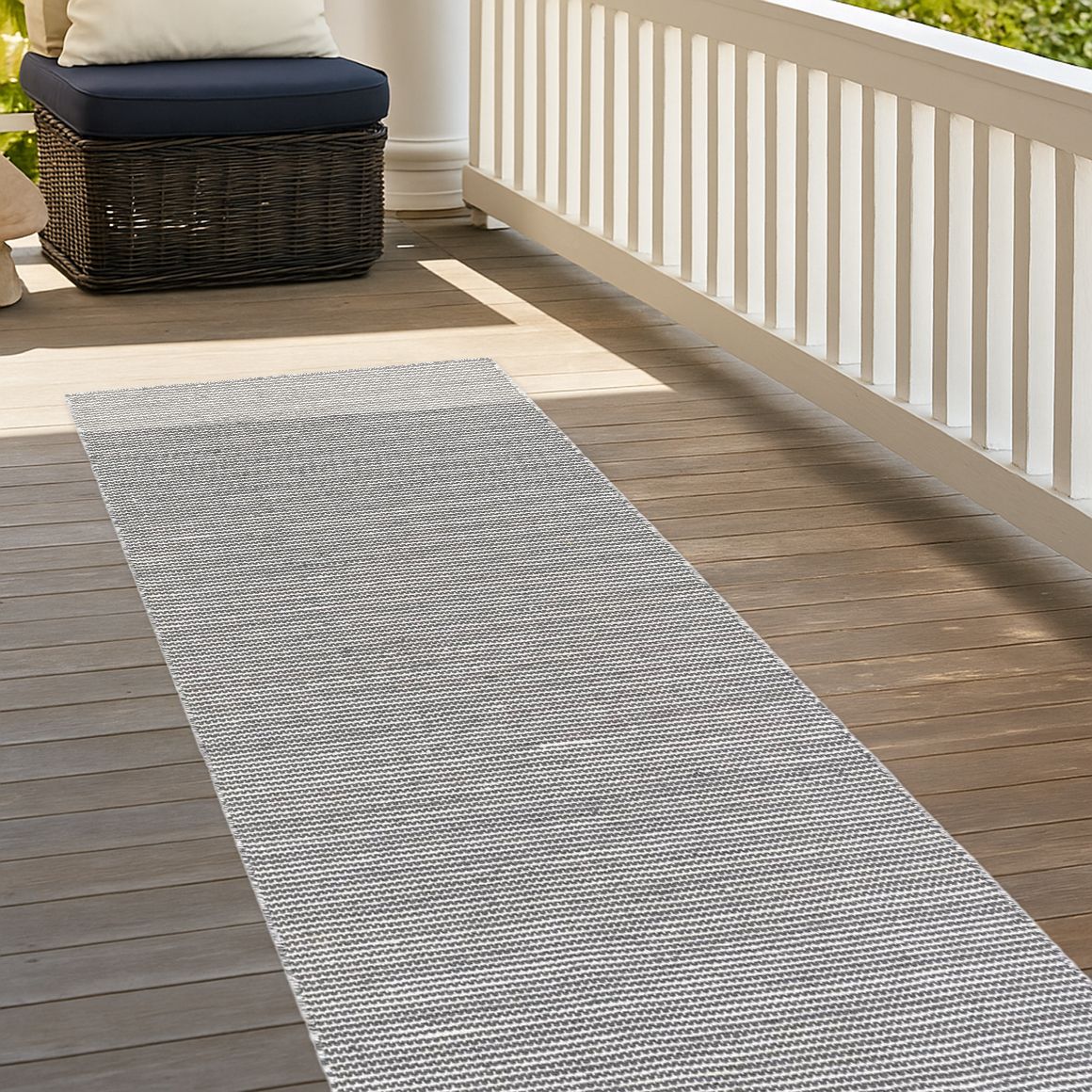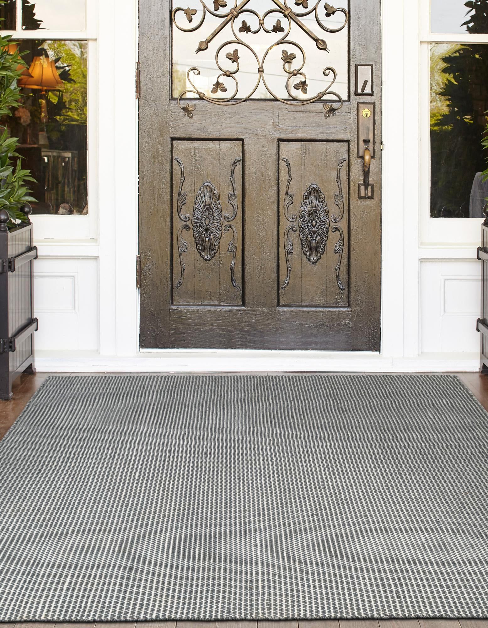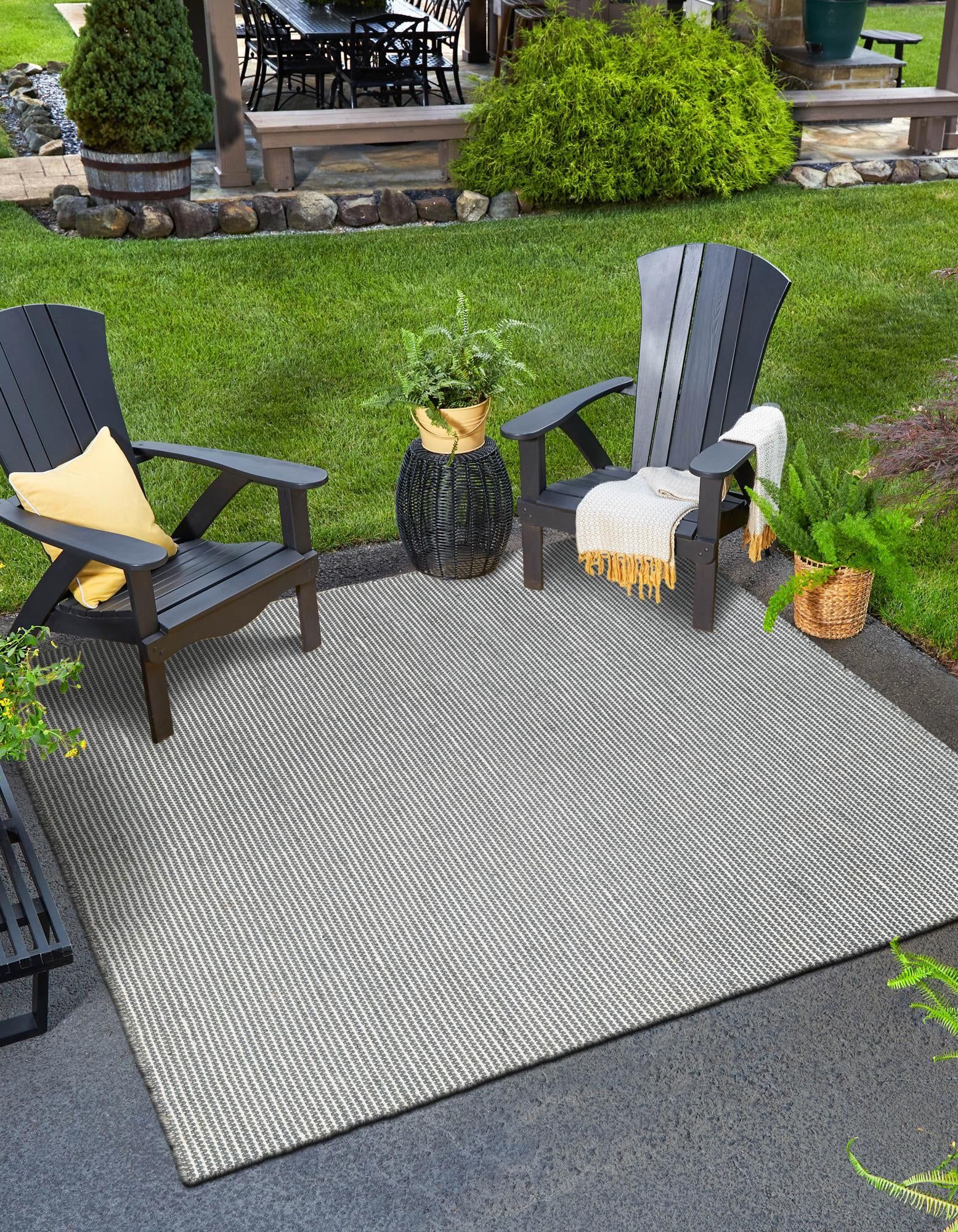 This versatile indoor/outdoor rug is hand made in India using 100% PET derived from recycled plastic bottles, offering both sustainability and durability. Its medium pile provides a comfortable feel underfoot, while the handcrafted weave ensures a unique, artisanal finish ideal for a variety of spaces.